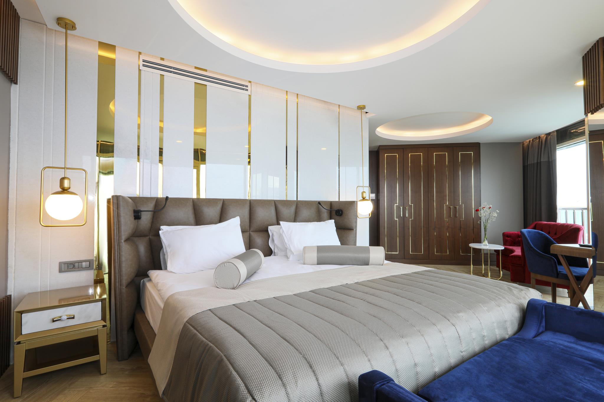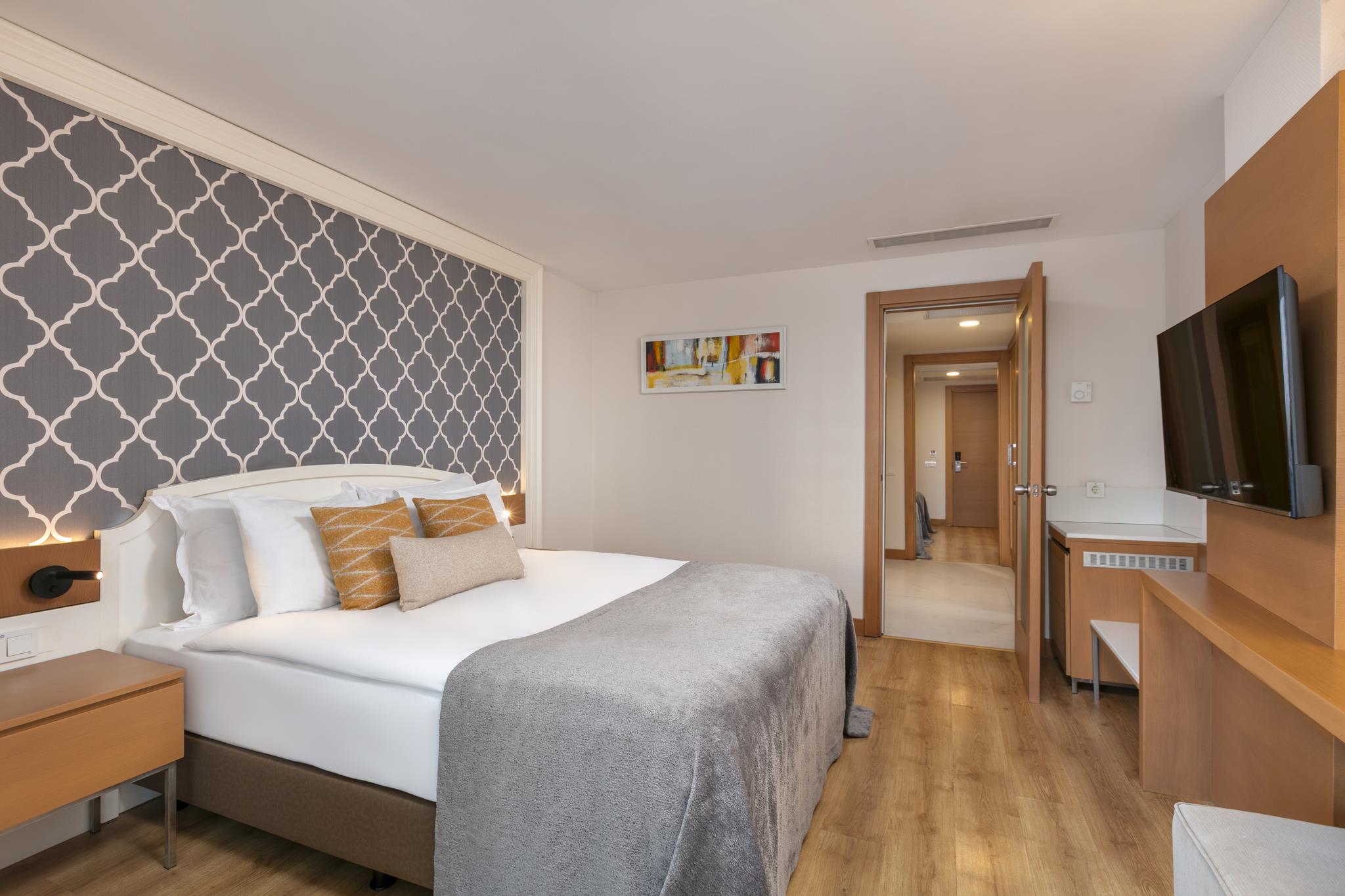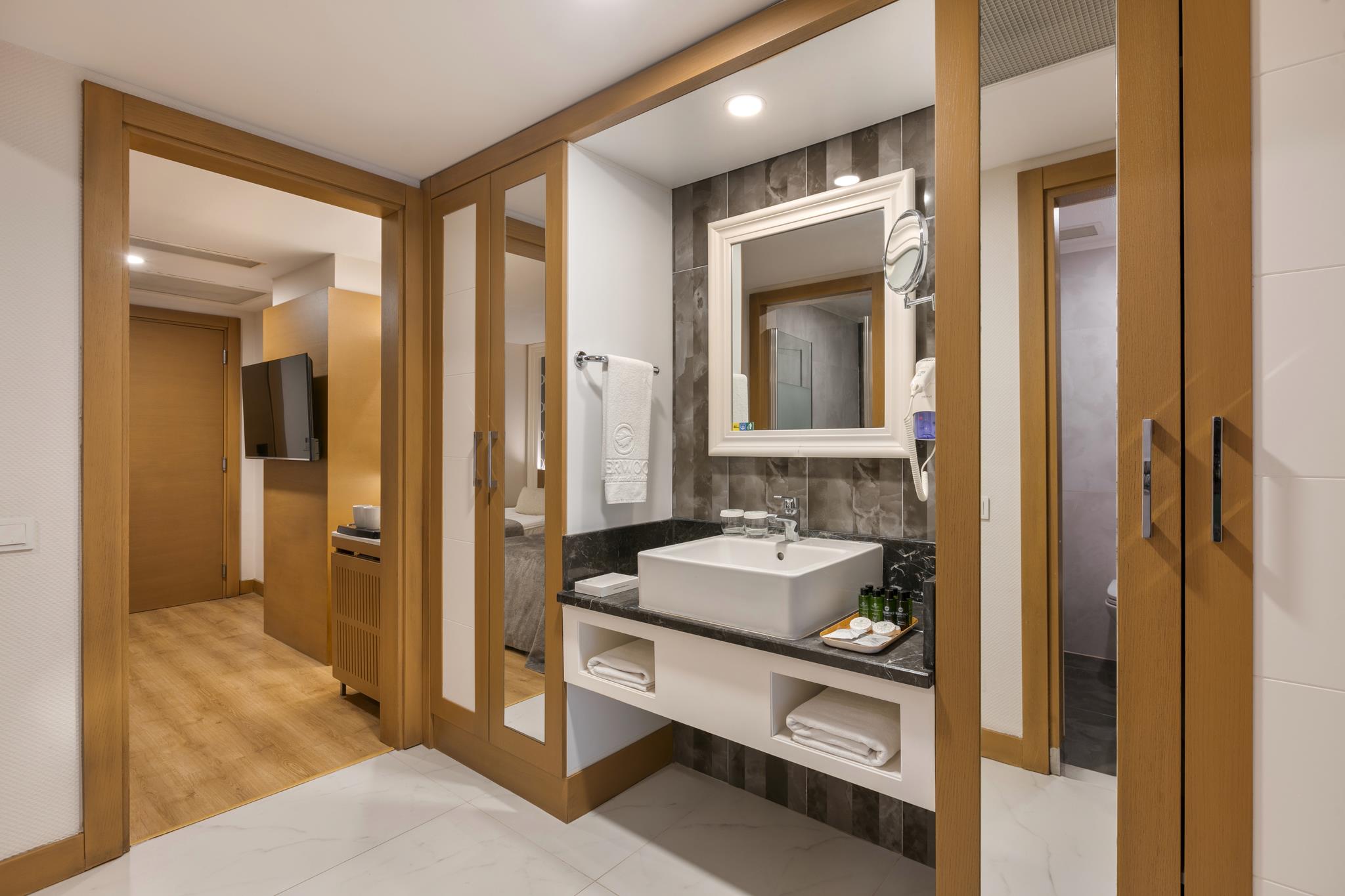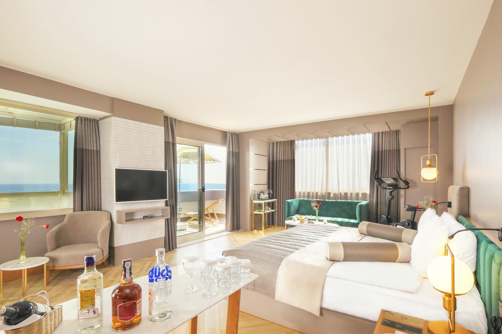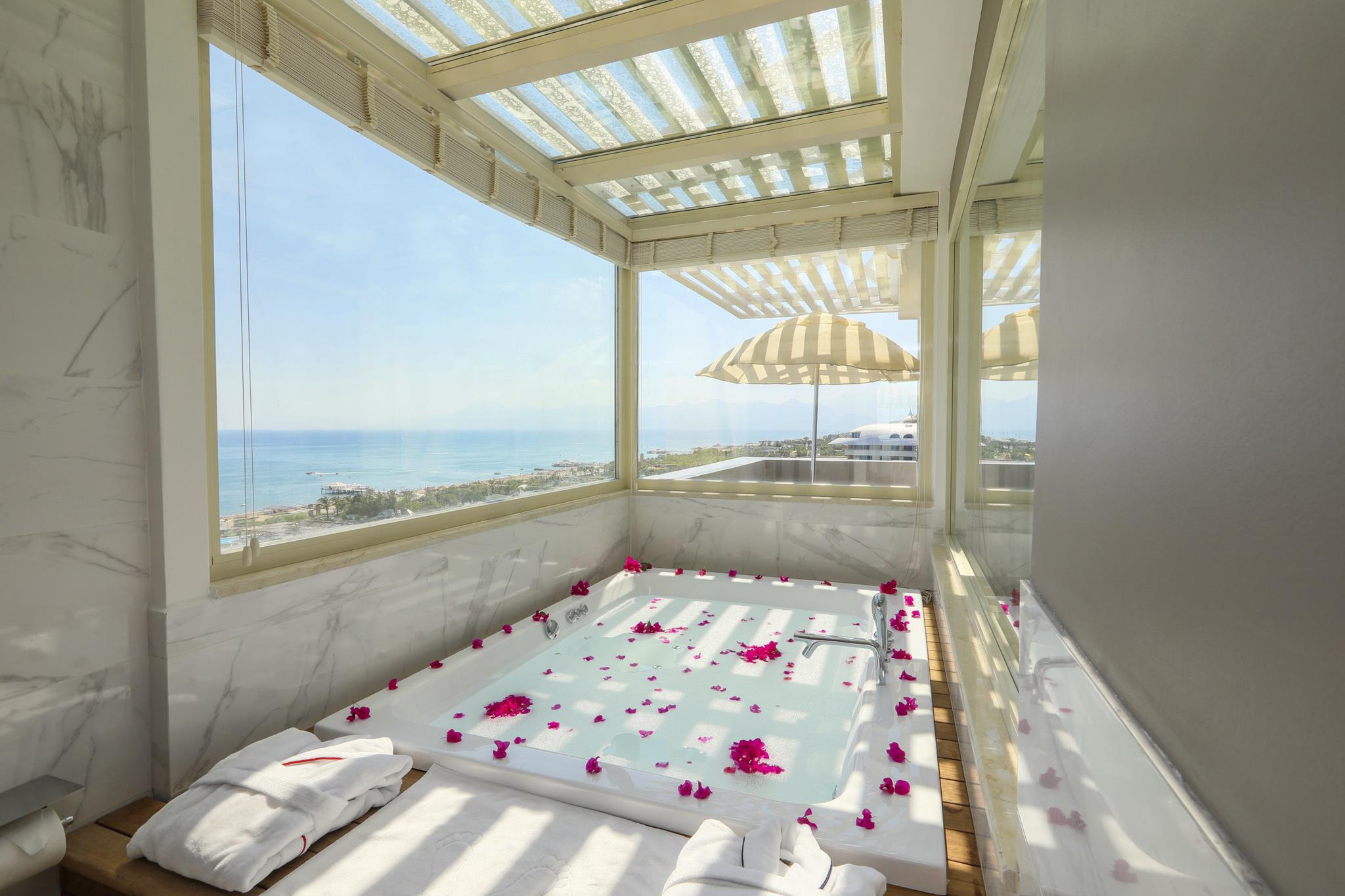 Удобства в номерах: Сейф, Кондиционер, Обслуживание в номерах, Терраса, Фен, Телевизор, Мини-бар, Телефон, Душ